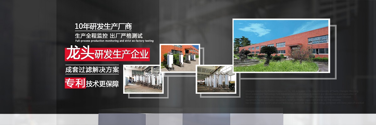 成都愛爾純凈化設(shè)備有限公司,坐落于美麗的天府之國,成都市溫江區(qū)海峽科技園工業(yè)區(qū),專業(yè)從事于過濾、凈化技術(shù)的研發(fā)應(yīng)用,產(chǎn)品有保健酒過濾設(shè)備、白酒過濾設(shè)備、白酒凈化設(shè)備、水凈化設(shè)備等,公司引進(jìn)世界先進(jìn)過濾分子技術(shù),結(jié)合專業(yè)技術(shù)人員資深多年實踐經(jīng)驗,解決酒類、飲水類后期處理難題。 業(yè)務(wù)涵蓋,酒類過濾:除混濁沉淀,澄清處理、除苦味,異雜味,新酒催熟陳化處理 、除塑化劑、固形物、雜醇油、甲醇及各類含量超標(biāo)后期處理。 水類:軟水、純凈水、礦泉水、飲料等凈化處理。用心為客戶提高生產(chǎn)效率、提高產(chǎn)品質(zhì)量、降低生產(chǎn)成本、環(huán)保減排而開發(fā)創(chuàng)新,堅持奮斗。 公司至誠每一位客戶,“誠信服務(wù),客戶至上”為宗旨,為客戶要求,用心凈化每一點滴,我們都將以精準(zhǔn)的數(shù)據(jù)化設(shè)計、嚴(yán)格的設(shè)備制作質(zhì)量把關(guān)、快捷專業(yè)的安裝調(diào)試以及周到的售后服務(wù),解決客戶生產(chǎn)過程中遇見的各種酒、水后期處理的技術(shù)難題。
